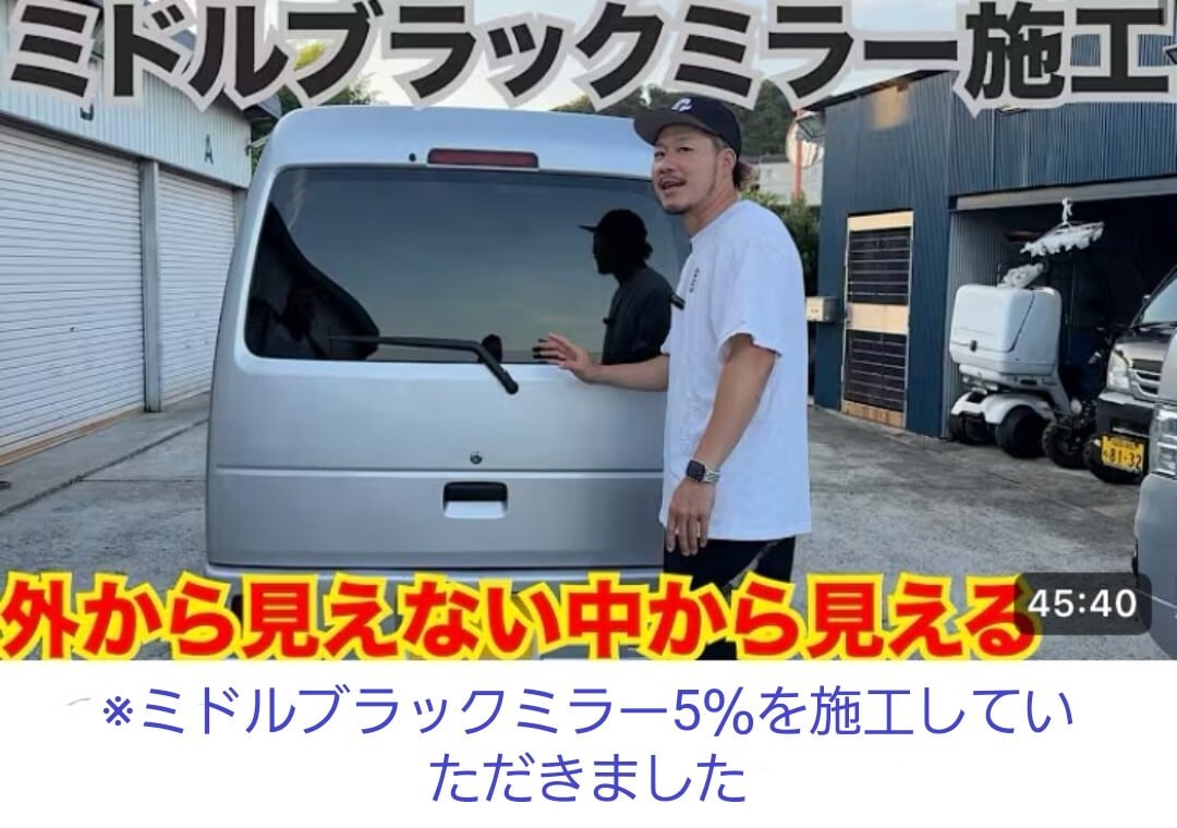 ガレージ11 こみちゃんのエブリイに使用している 透明ガラス用ブラックミラーフィルム 『ミドルブラックミラー5%』です。