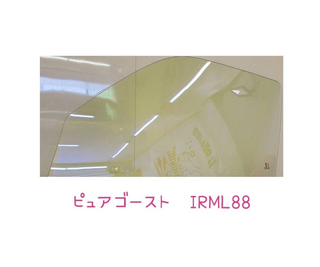 ハイエース・レジアスエース用の200系クリアガラス「ピュアガラス90」に、ピュアゴーストIRML88のフィルムを施工した運転席・助手席のガラスになります。