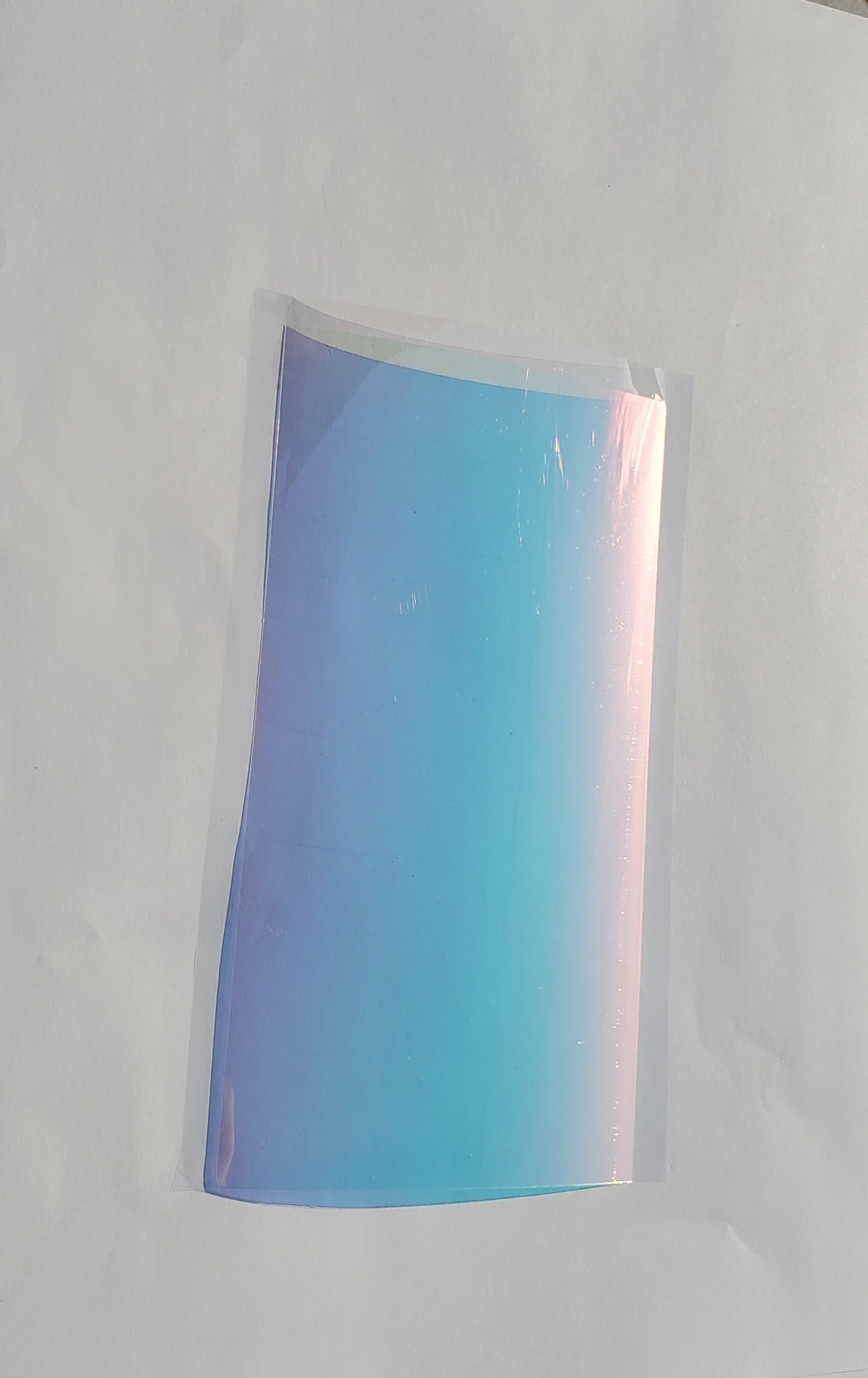 1色のフィルムではなく、見る角度によって色が変化して見えるフィルムです。