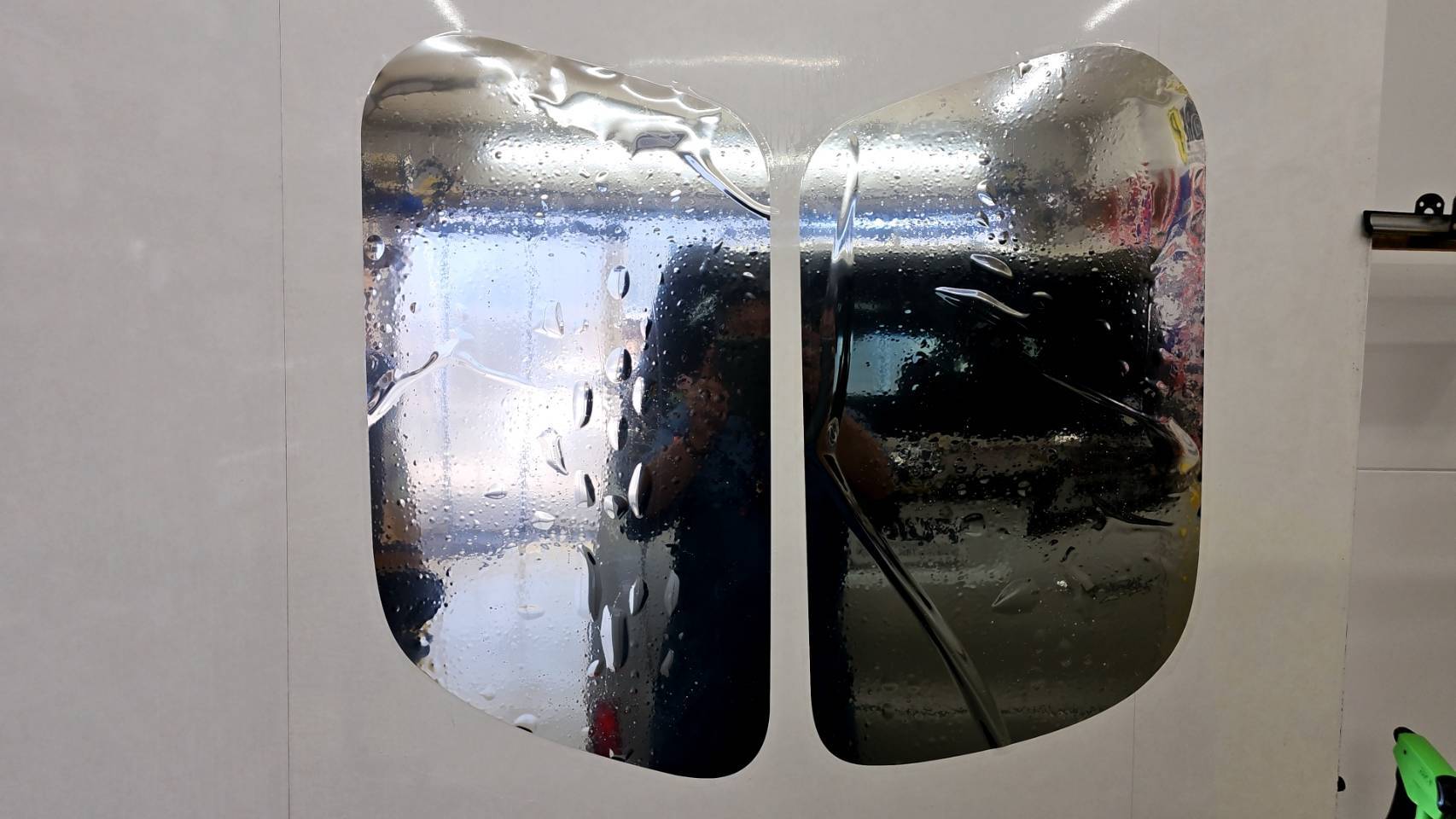 プライバシーガラスに施工すると、黒ミラーの様になります。